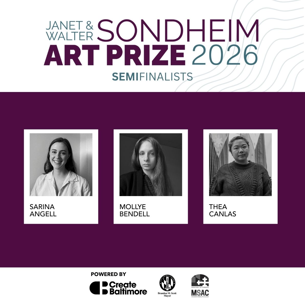 For more information about the Sondheim Art Prize and the upcoming exhibition, visit Create Baltimore’s website or follow the organization on social media.