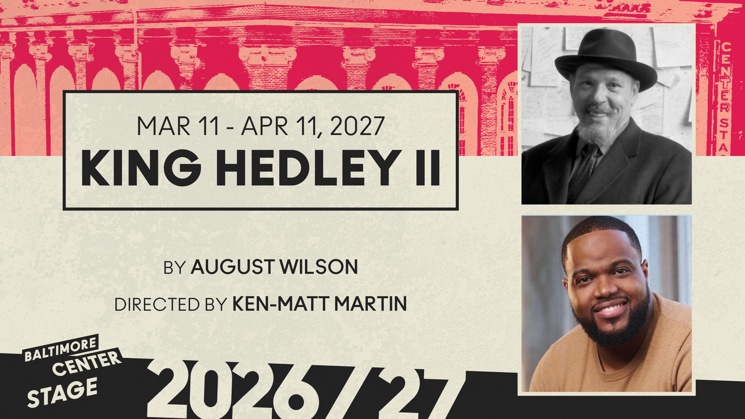 King Hedley II, premiering in March 2027, is one of August Wilson’s most powerful and least frequently produced plays. Directed by Ken-Matt Martin, this American classic follows a man determined to build a future in a world that has given him few tools to succeed, exploring cycles of survival, love, and hope within a community shaped by both hardship and resilience. The production is part of the citywide Baltimore August Wilson Celebration.