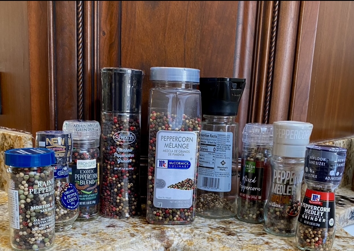 In the process of trying to understand why pink peppercorns, a known allergen, is sold without a warning for people who are allergic to tree nuts, several supermarkets were visited to review the ingredient labels of six different brands. Mrs. Bramble was surprised to learn there were no tree nut warnings on any of the peppercorn medleys.