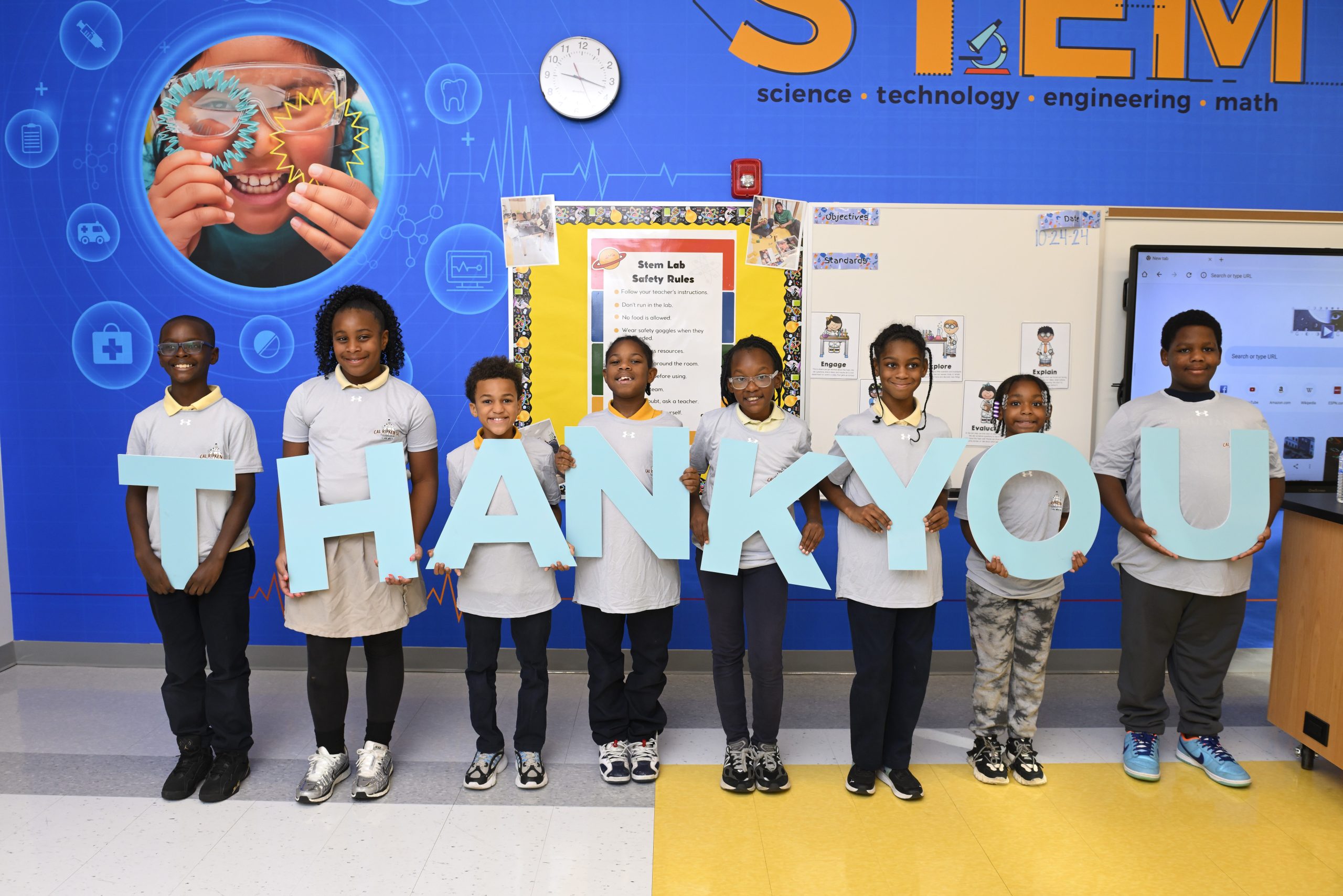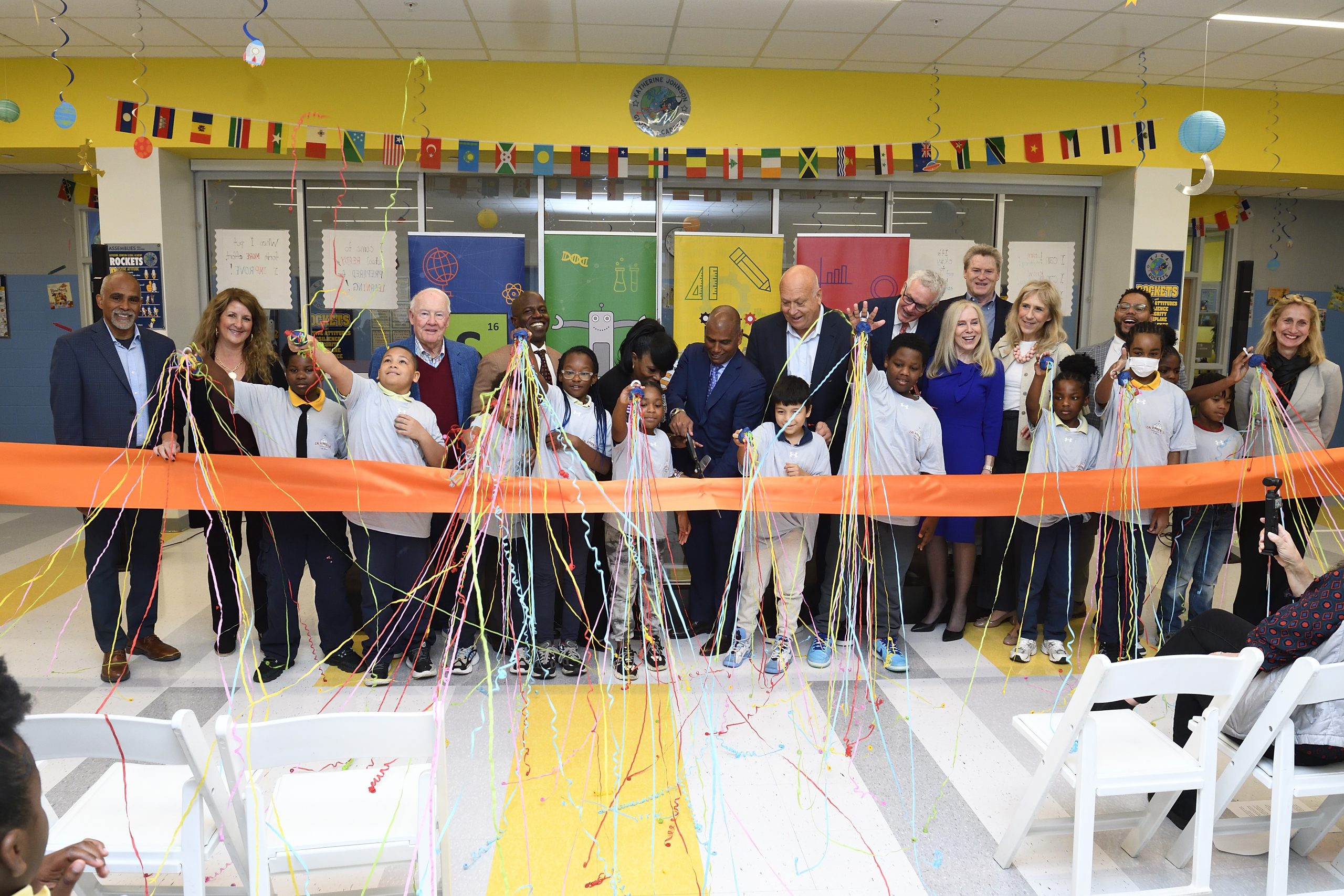 Officials from the Cal Ripken Sr. Foundation (CRSF) joined leaders from the University of Maryland Medical System and a group of Baltimore City educators and students for a ribbon-cutting ceremony that celebrated the launch of a state-of-the-art STEM center at Katherine Johnson Global Academy in West Baltimore on October 24, 2024.