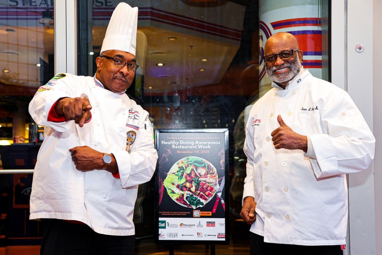 Chefs Walter Frazier and Ivan Crump of the American Culinary Federation, Greater Baltimore Chapter, help to kick off the start of Healthy Dining Awareness Restaurant Week at Supano’s Steakhouse Bar & Grill. This first annual event, created by The Baltimore Times and its nonprofit, Times Community Services, Inc., highlights restaurants, community partners, vendors, and chefs who are committed to serving up wholesome menu options and spotlighting wellness. | Photos credit: Denzel Photography