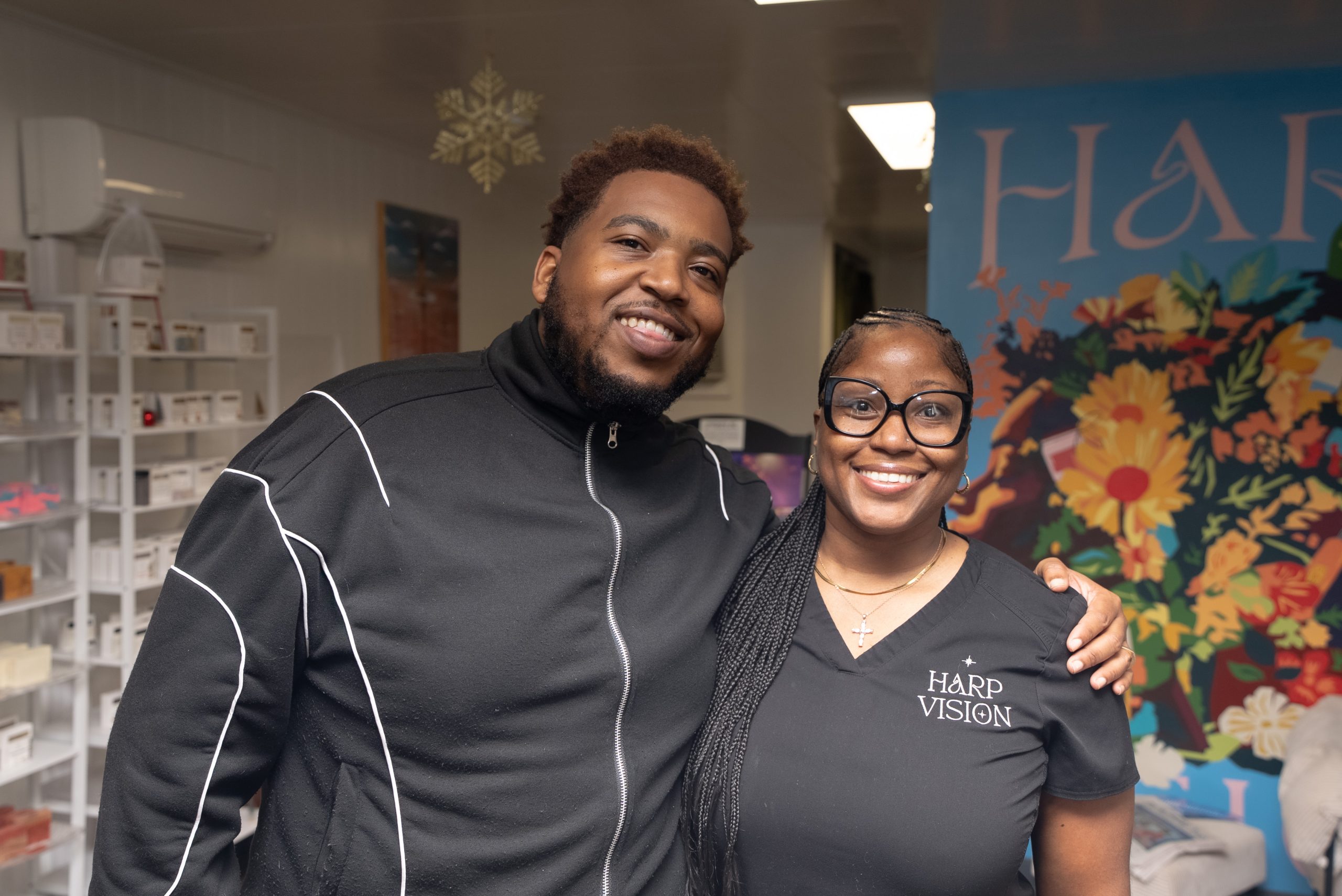 Beginning in Highlandtown, the Mayor stepped into Harp Vision, a family-owned vegan self-care brand whose warm welcome set the tone for the day. After opening remarks from Director Charlyn Nater, Senate President Bill Ferguson, and Delegate Scott Philips, Mayor Scott presented a proclamation recognizing the vital role of small business owners across the city. Shoppers gathered inside the shop, exploring handmade items that reflected both artistry and entrepreneurship.