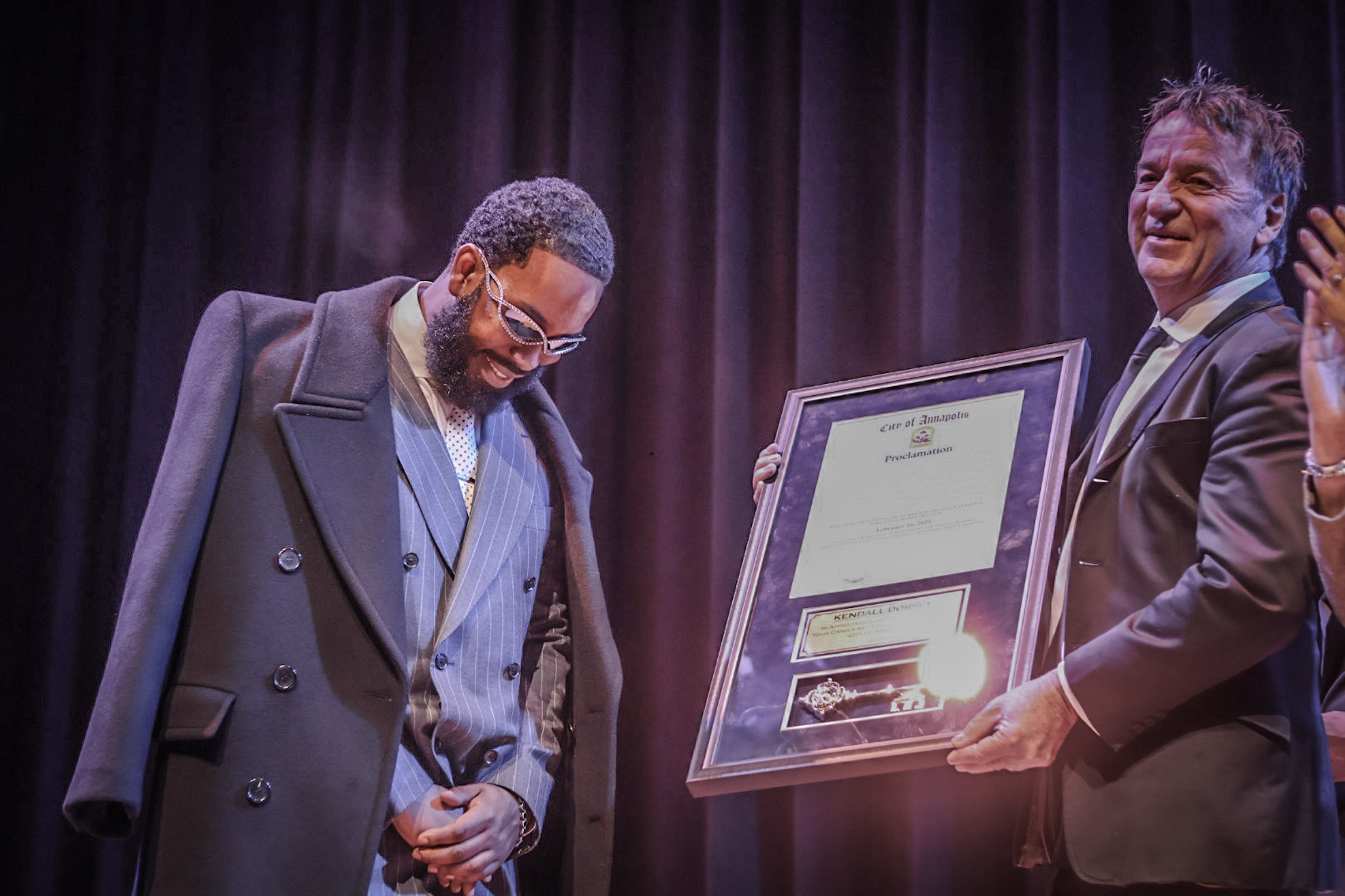 “We were so happy to present the Key to the City to Kendall, who has risen to the highest levels of his field after coming from humble beginnings here in Annapolis,” said Mayor Gavin Buckley. “I was impressed by his willingness to give back to the community while he was here, with visits to Annapolis Middle and Annapolis High Schools as well as visits and workshops with local hair stylists. I was also touched by how moved and honored he was to be recognized by his hometown. Seeing that smile on his face and the faces of those in the audience made it all worthwhile.”