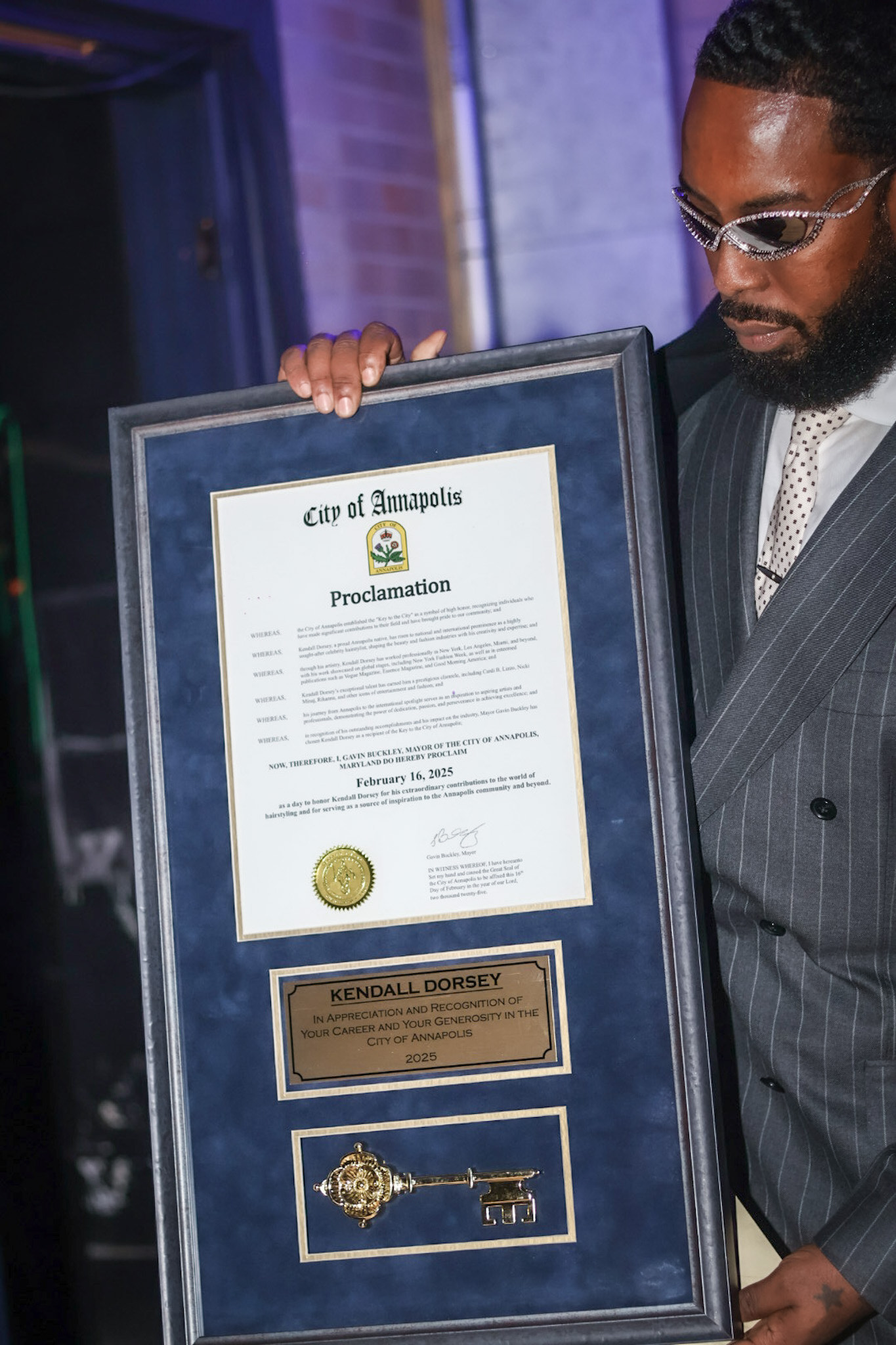 Mayor Gavin Buckley presented Dorsey with a Key to the City to honor the Annapolitan’s triumph and success in working as a celebrity hairstylist in the entertainment and fashion industry.