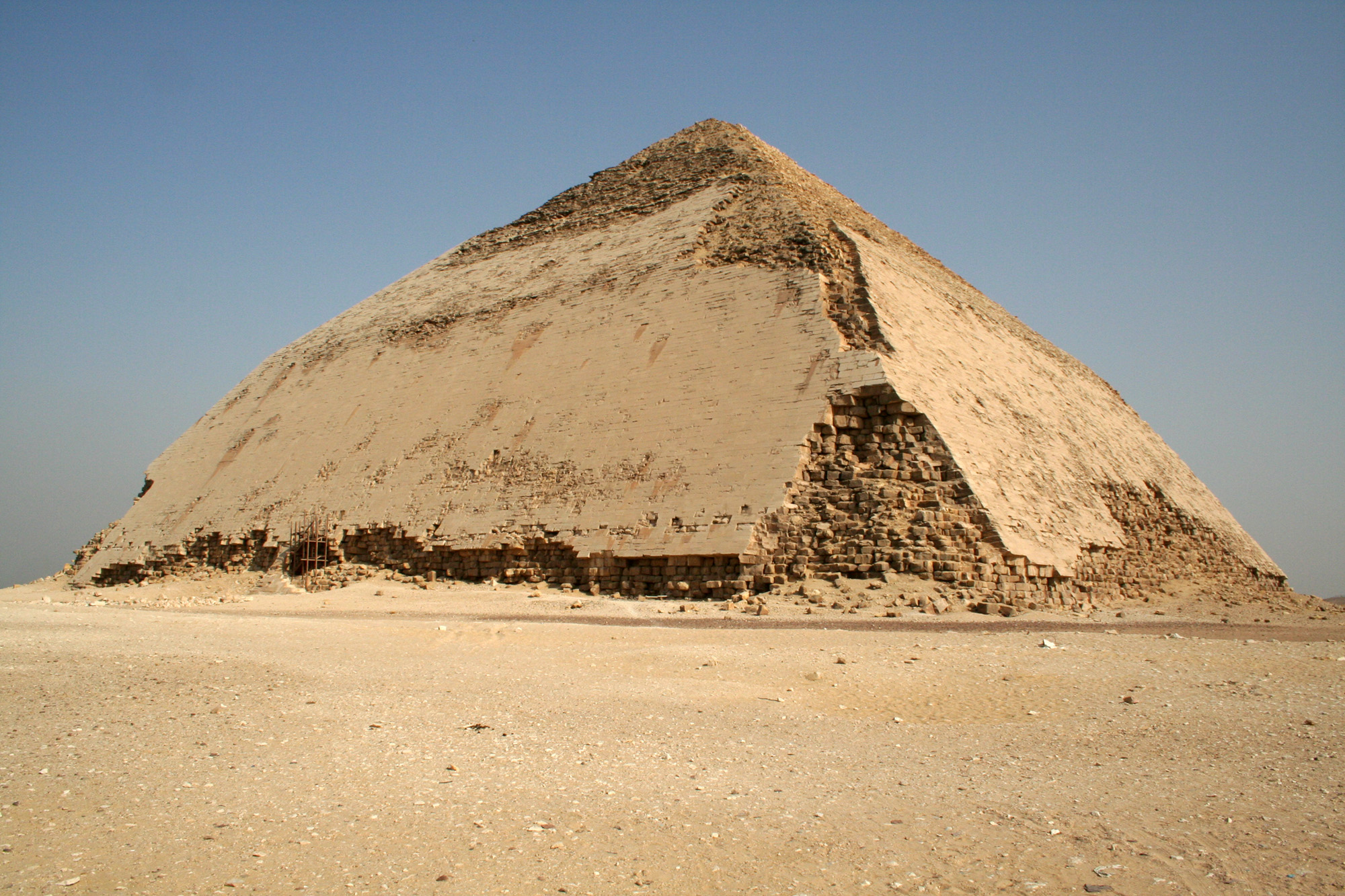 The 4,600-year-old structure — so called because its upper half is built at a lower angle than its base — is located at the royal necropolis of Dahshur, about 40 kilometers (25 miles) south of Cairo. It’s the only pyramid in the world to have retained its outer limestone casing since it was built, but authorities fear it will fall away in less than 50 years.