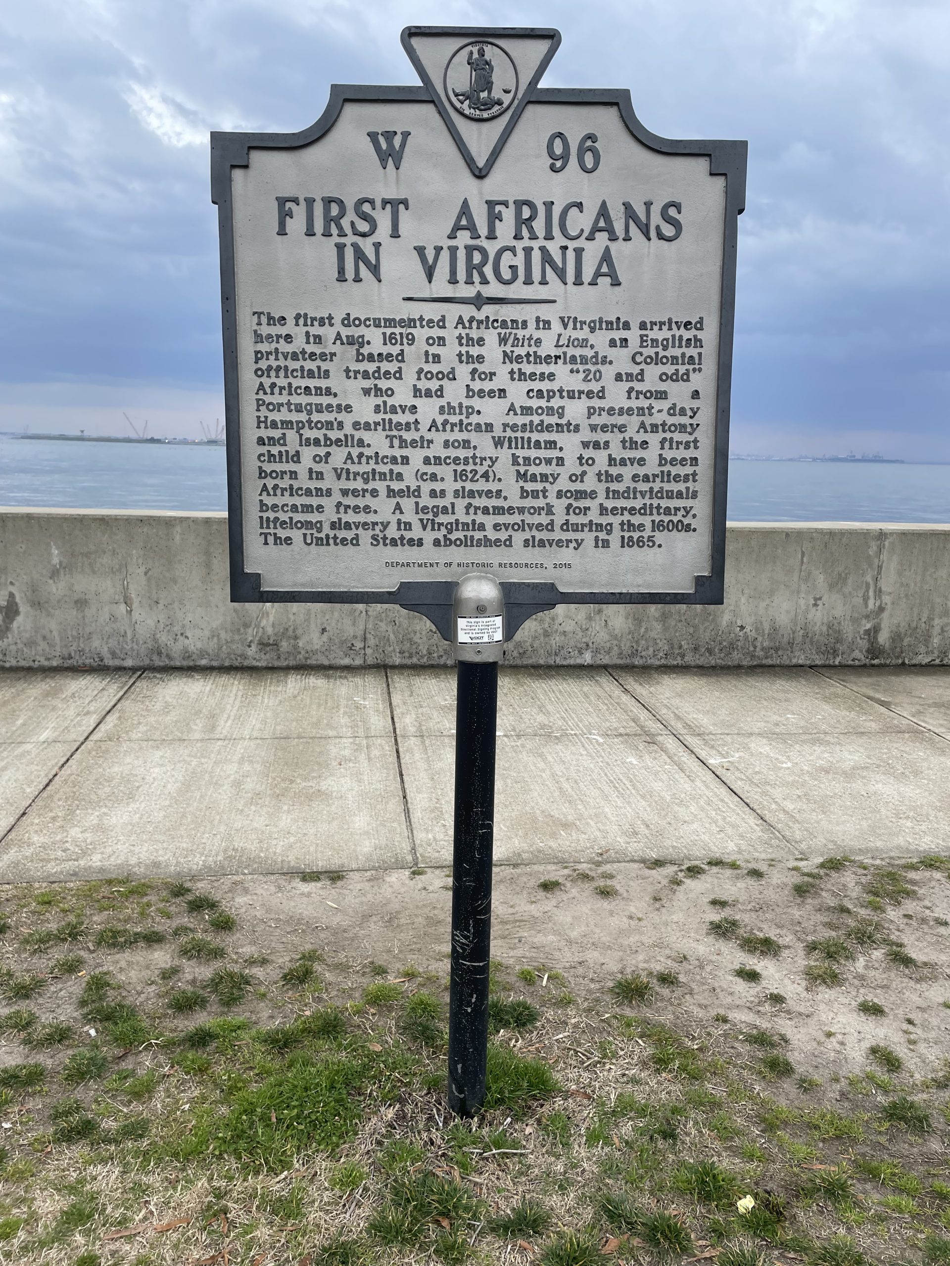 “In late August of 1619, a ship flying a Dutch flag called the White Lion, and a couple days later the Treasurer, landed at Point Comfort looking to trade “20. and odd” enslaved Africans for supplies. This was the first documented trade of enslaved Africans in English-speaking North America,” said Aaron G. Firth, Park Ranger at Fort Monroe National Monument. “Some of the Africans are thought to stay here and the remainder taken on to the Virginia Colony capital at Jamestown.”